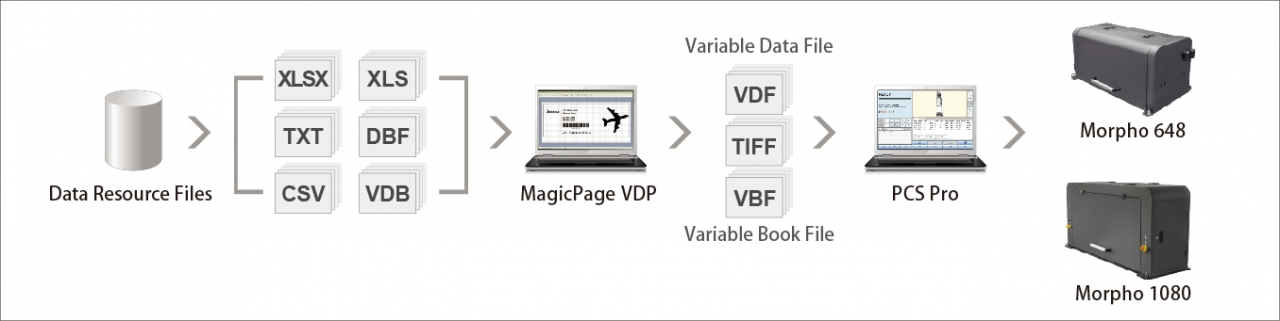 As comprehensive monochrome VDP inkjet printing engines, Morpho 648/ 1080 work seamlessly with MagicPage and PCS Pro to achieve efficient VDP workflow.