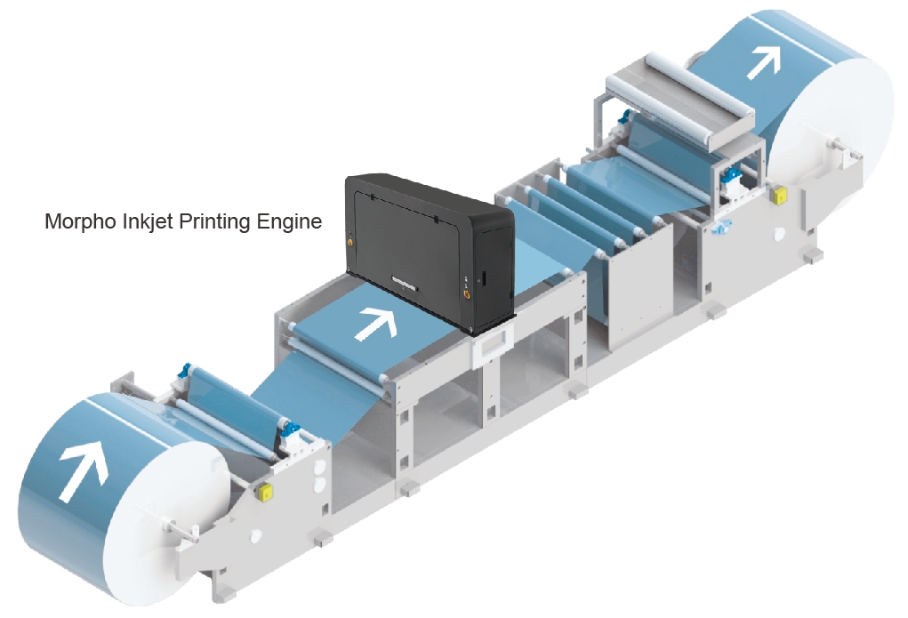 Morpho 648/ 1080 are high-performance wide-format inkjet printing engines for single-pass variable data printing (VDP). It can be easily integrated into customer’s roll-to-roll production lines. Morpho 648/ 1080 are suitable for high-speed online/ offline web printing at designated location. The modular design offers great flexibility to combine Morpho 648/ 1080 with different technologies, such as media transportation, UV curing, camera inspection for batching and verification.