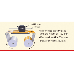 For roll-to-roll table printing mode, the LPS330 printer is the innovative combination of common scanning printing technology and web press technology. The LPS330 printer allows you to produce eye-catching, distinctive prints for a wide variety of applications.