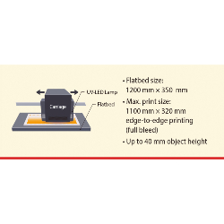 For table printing mode, the LPS330 printer uses scanning or single-pass inkjet printing technology on rigid substrates with the size of up to 1200 mm × 350 mm and the maximum thickness of 50 mm. Templates for special items, such as stationery, cards, gifts, and novelties, are supported.