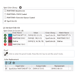 Spot colors are premixed inks used instead of, or in addition to, process color (CMYK) inks. NuviPRINT Software allows you to process and print spot colors with or without spot color libraries.