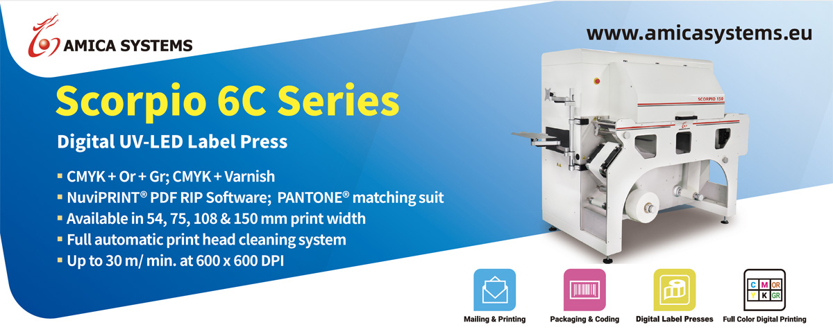 Introducing our Unique Scorpio Narrow 6 Color digital UV-LED Label Press. Do you want to get rid of high costs for special materials for Water Based systems? Would it not be convenient being able to print on any given material with UV ink? We promise you with our Scorpio you can immediately save costs on materials & inks. Contact us today to start your savings!